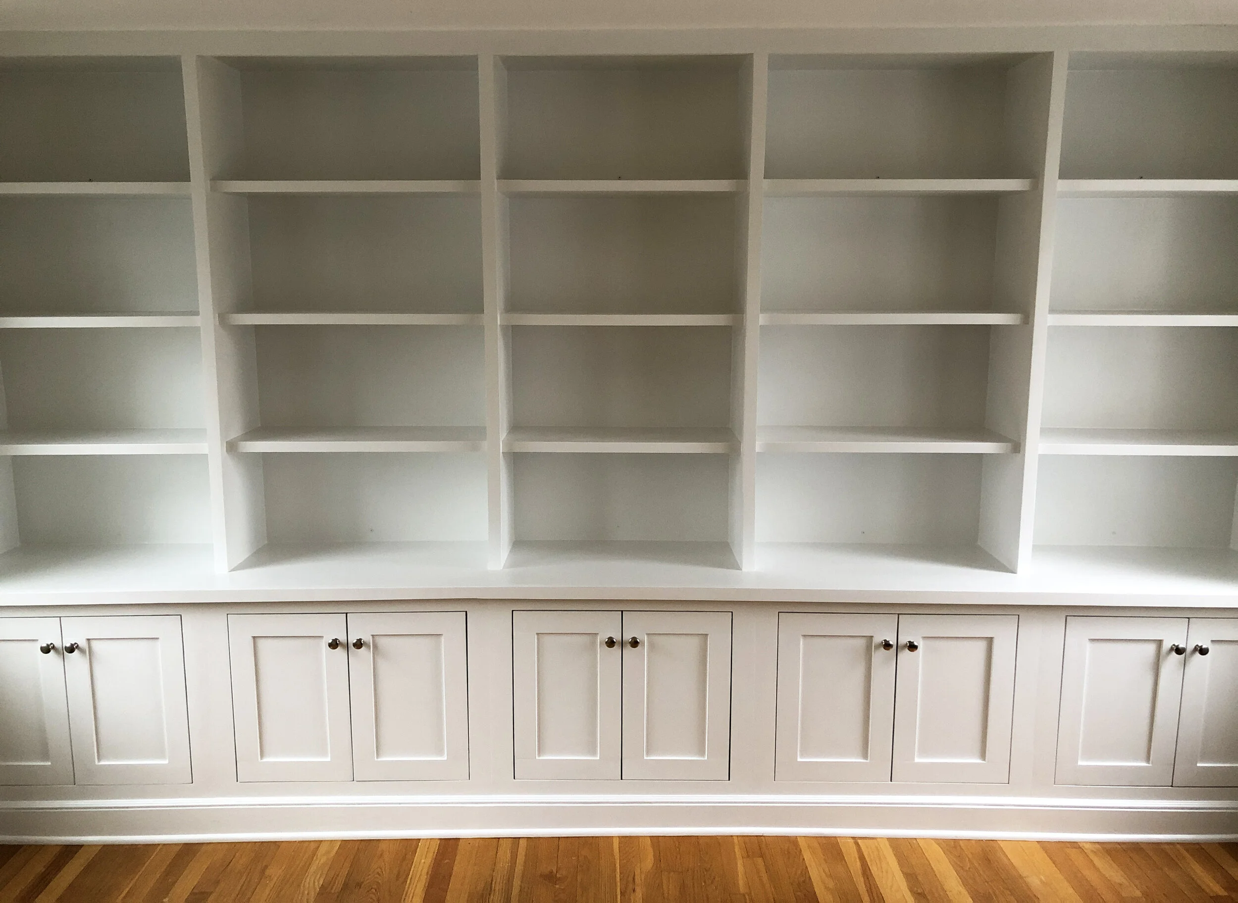 A portion of the custom cabinets and shelving I created for a curved Victorian room.
